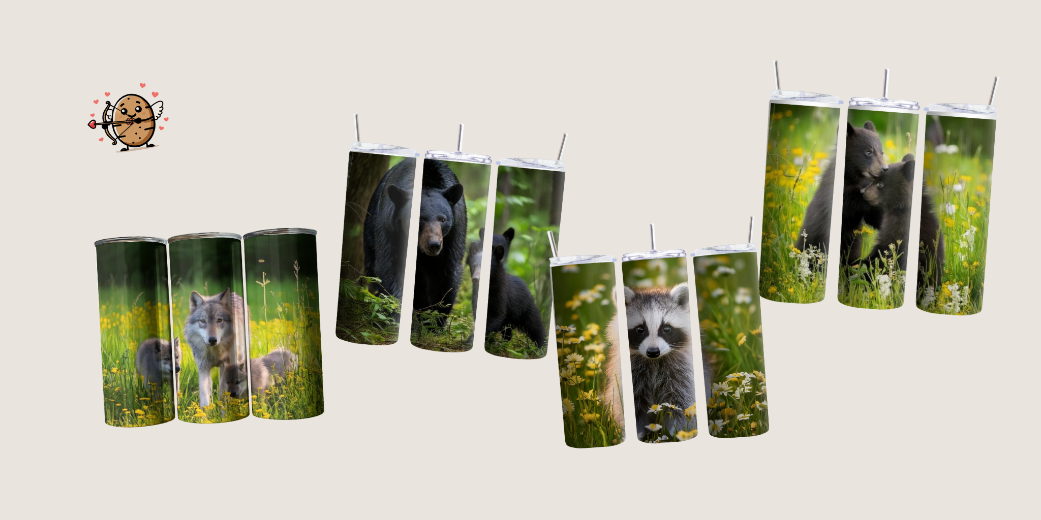 Wolf and Pups in Wildflowers Tumbler | Wildlife Drinkware for Animal Lovers & Nature Enthusiasts